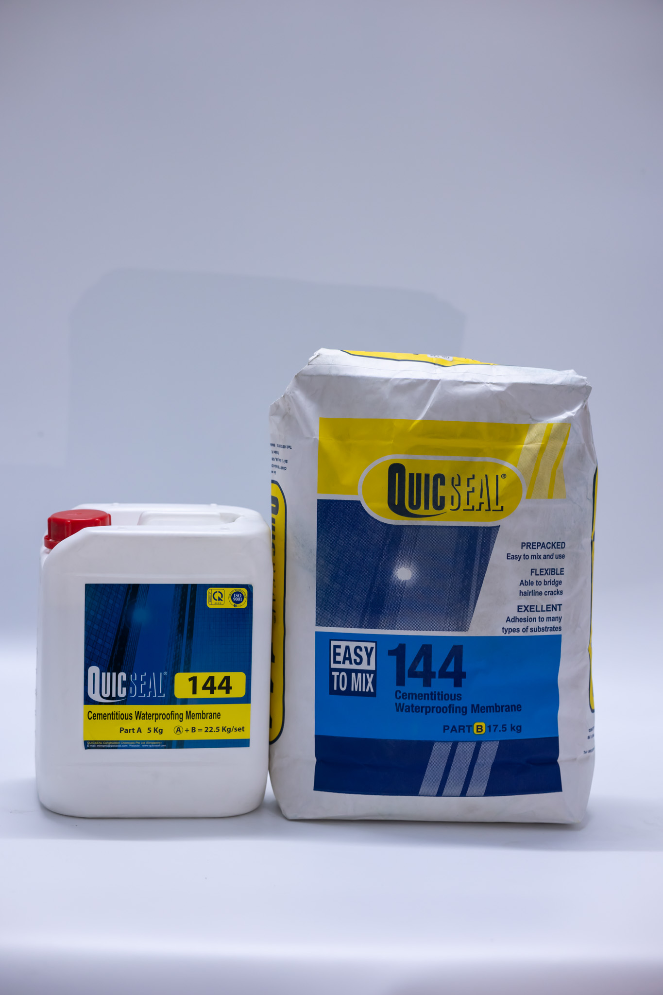 Quicseal 144 là sản phẩm màng chống thấm xi măng dẻo hai thành phần bao gồm nhựa tổng hợp pha trộn với hỗn hợp xi măng được chọn lọc và các chất phụ gia cao cấp khác.